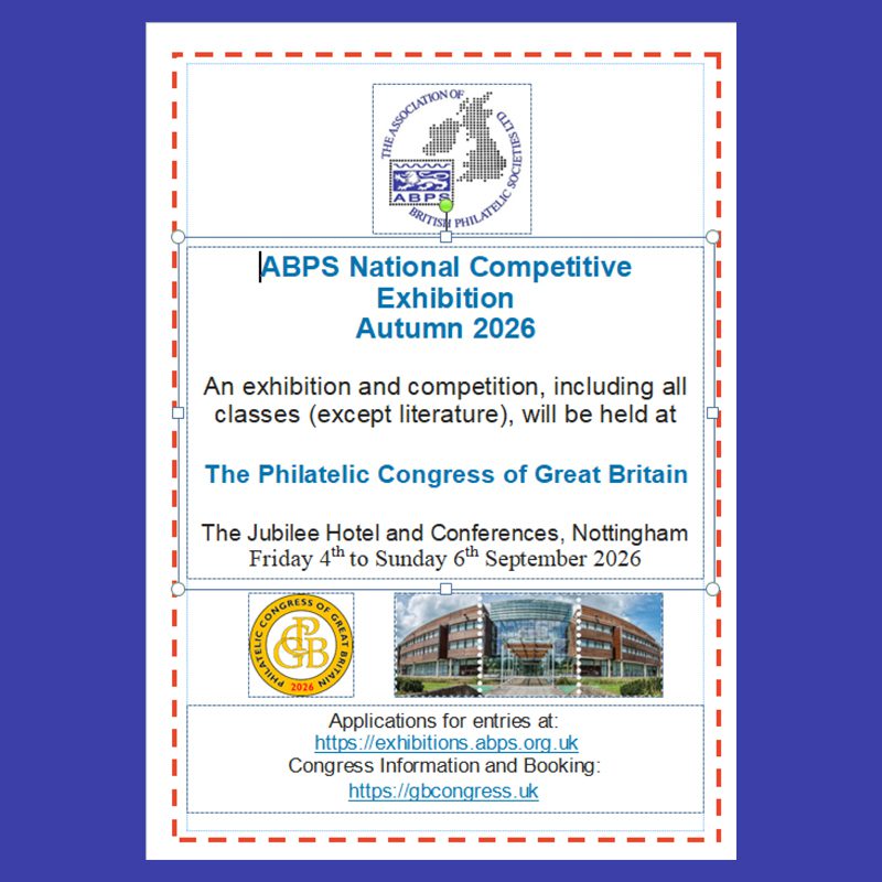 In 2026, the ABPS National Exhibition will take place in Nottingham during The Philatelic Congress of Great Britain from the […]