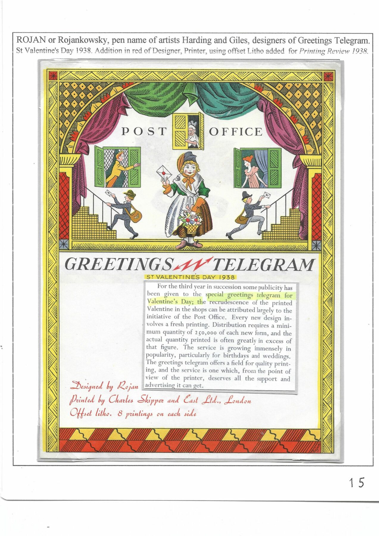 | Description: | An introduction to a series of colourful telegrams with messages of congratulations for weddings, birthdays and other joyous occasions introduced by the GPO in July 1935 concerned at the decline in use of the normal telegraph service. | ||||