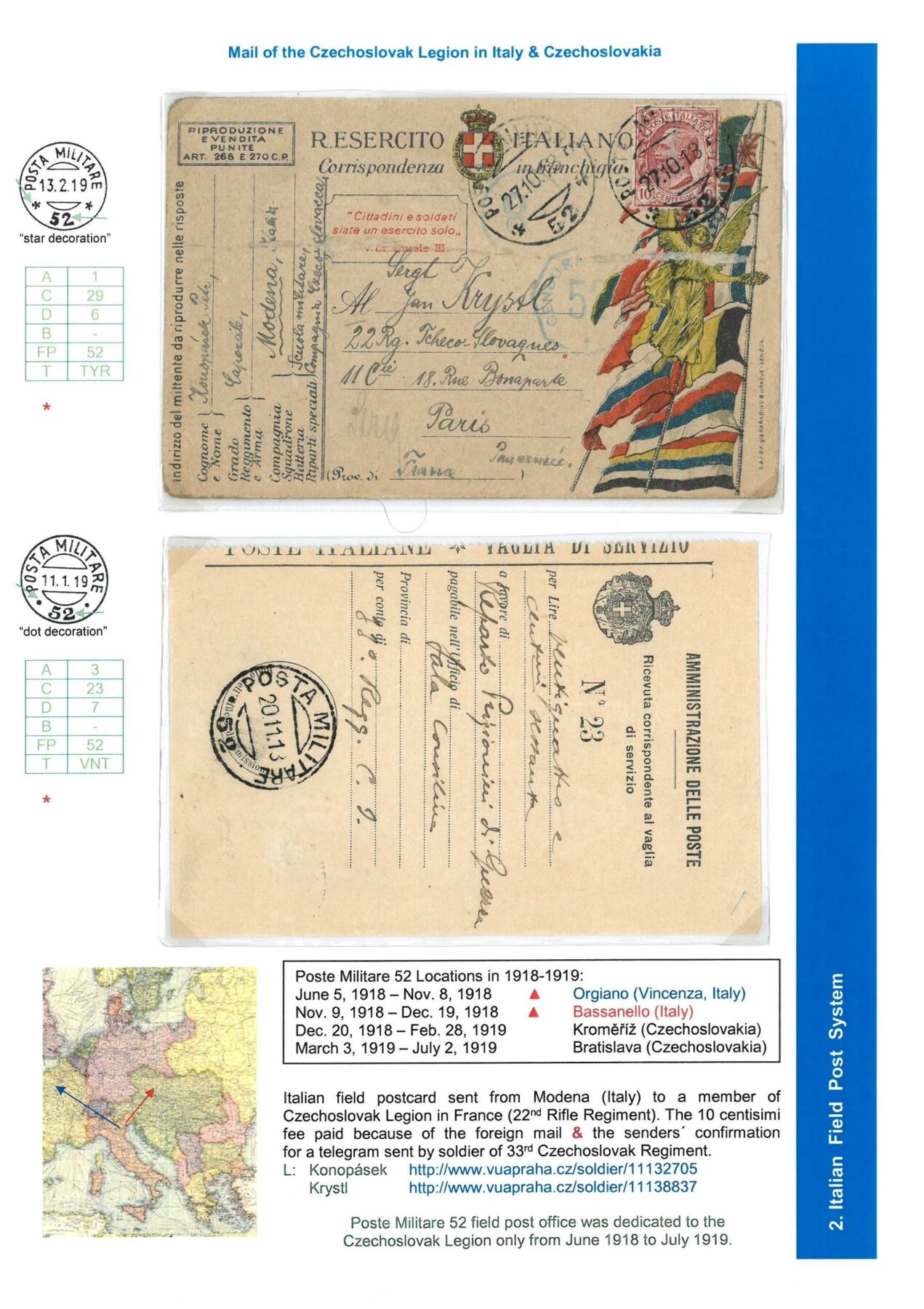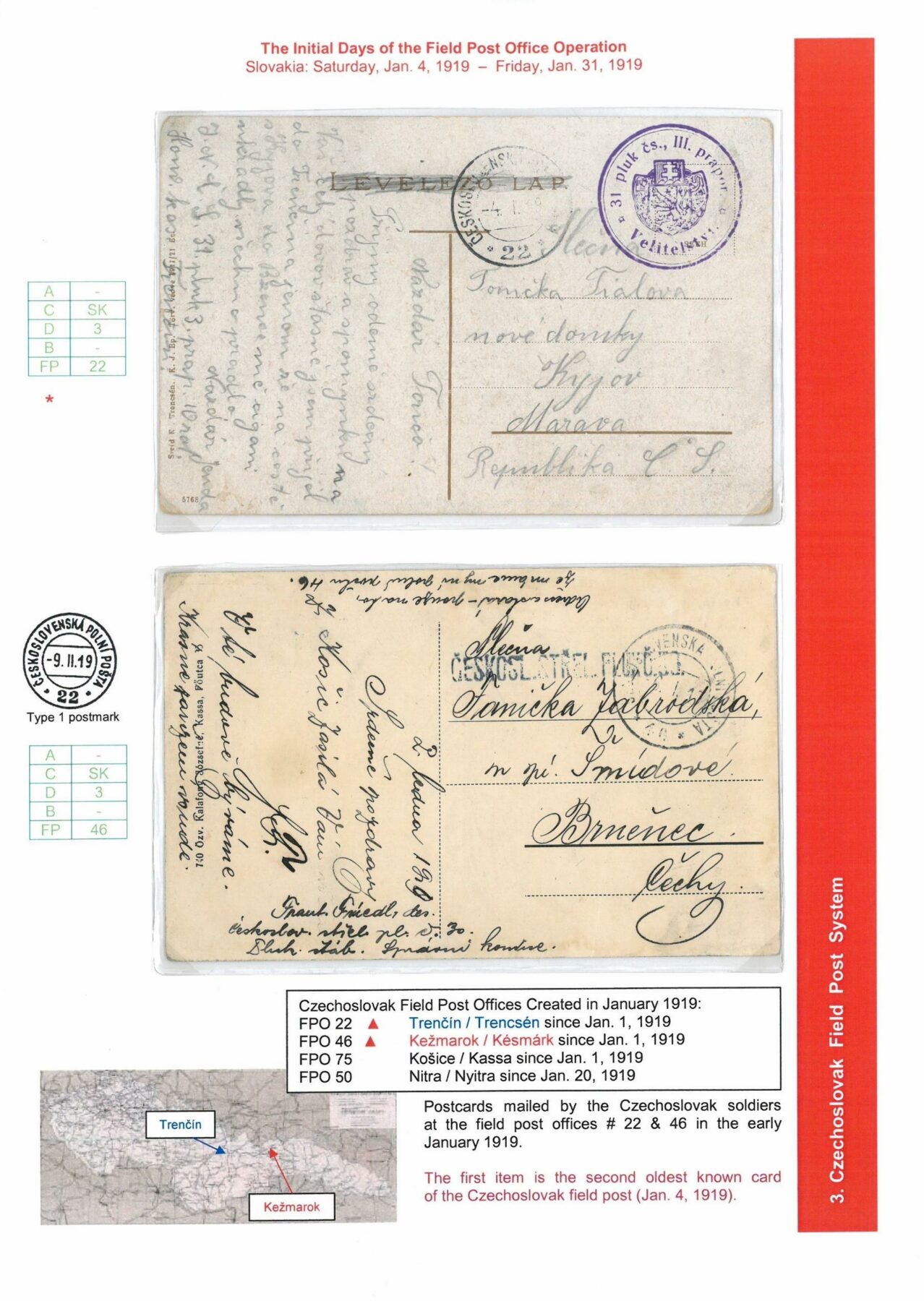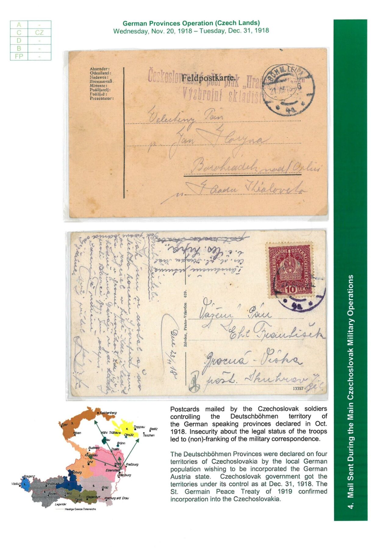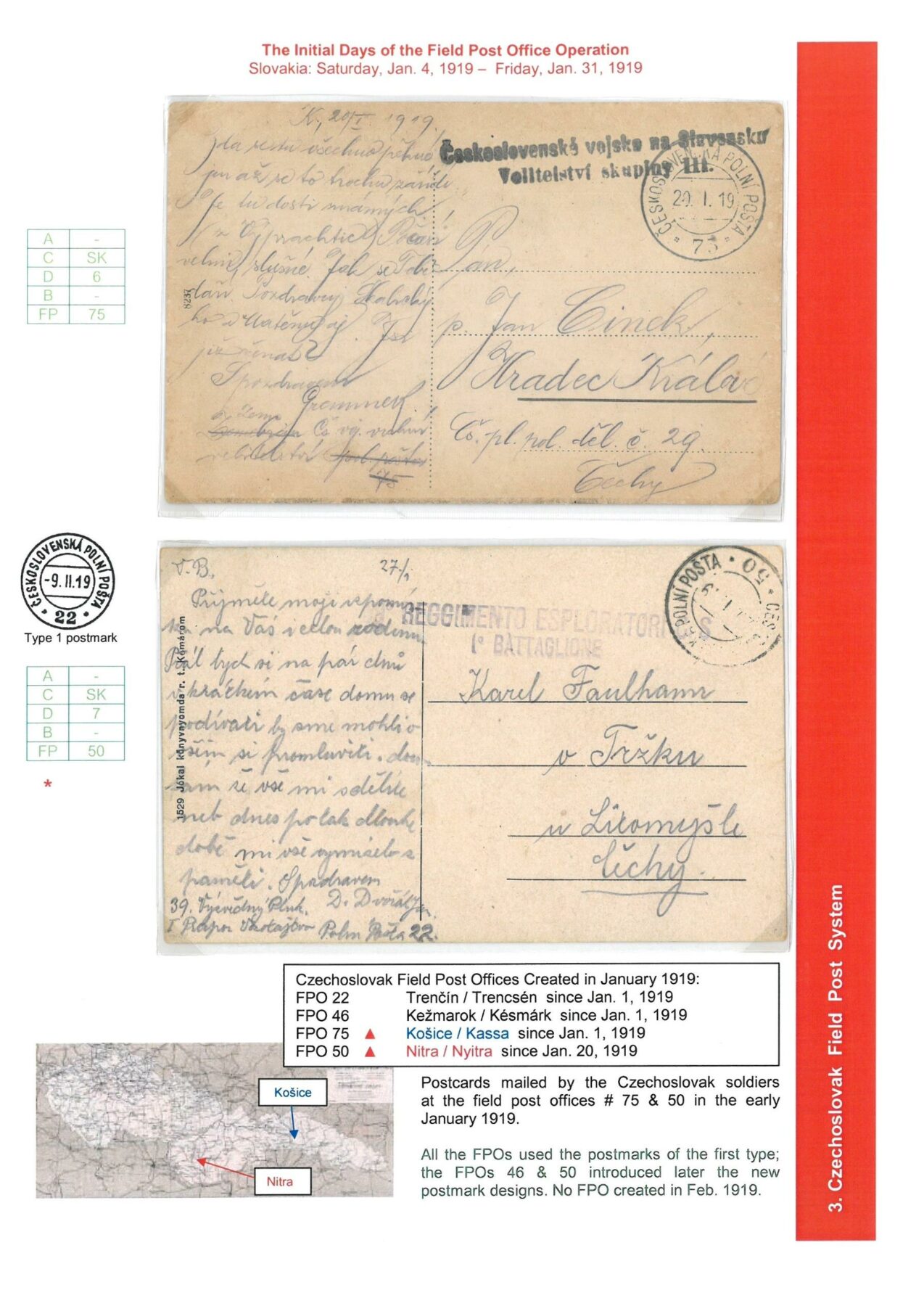 Field Post Systems on Czechoslovak Territory October 1918 to February 1919