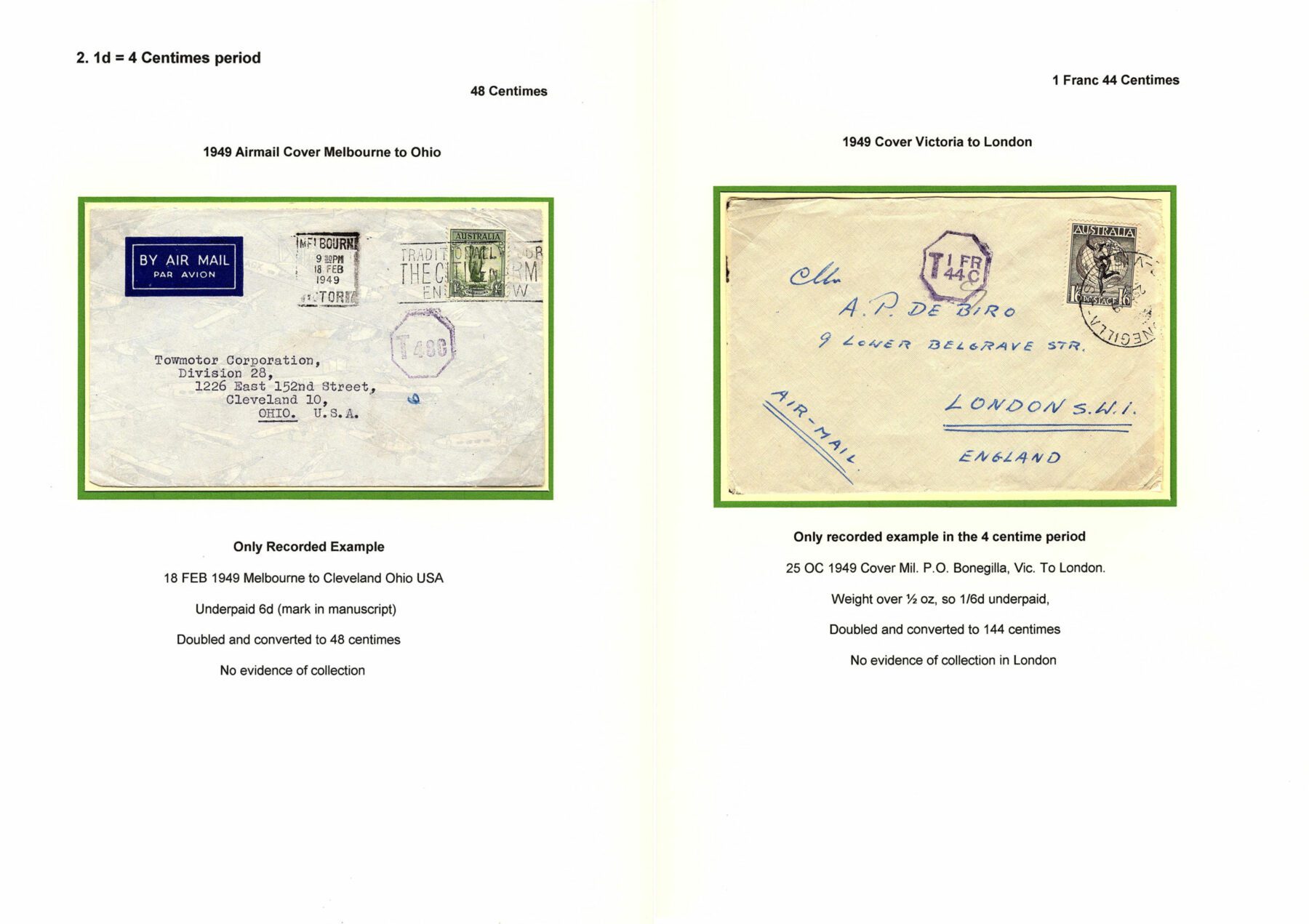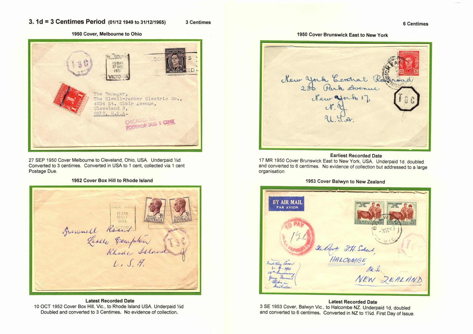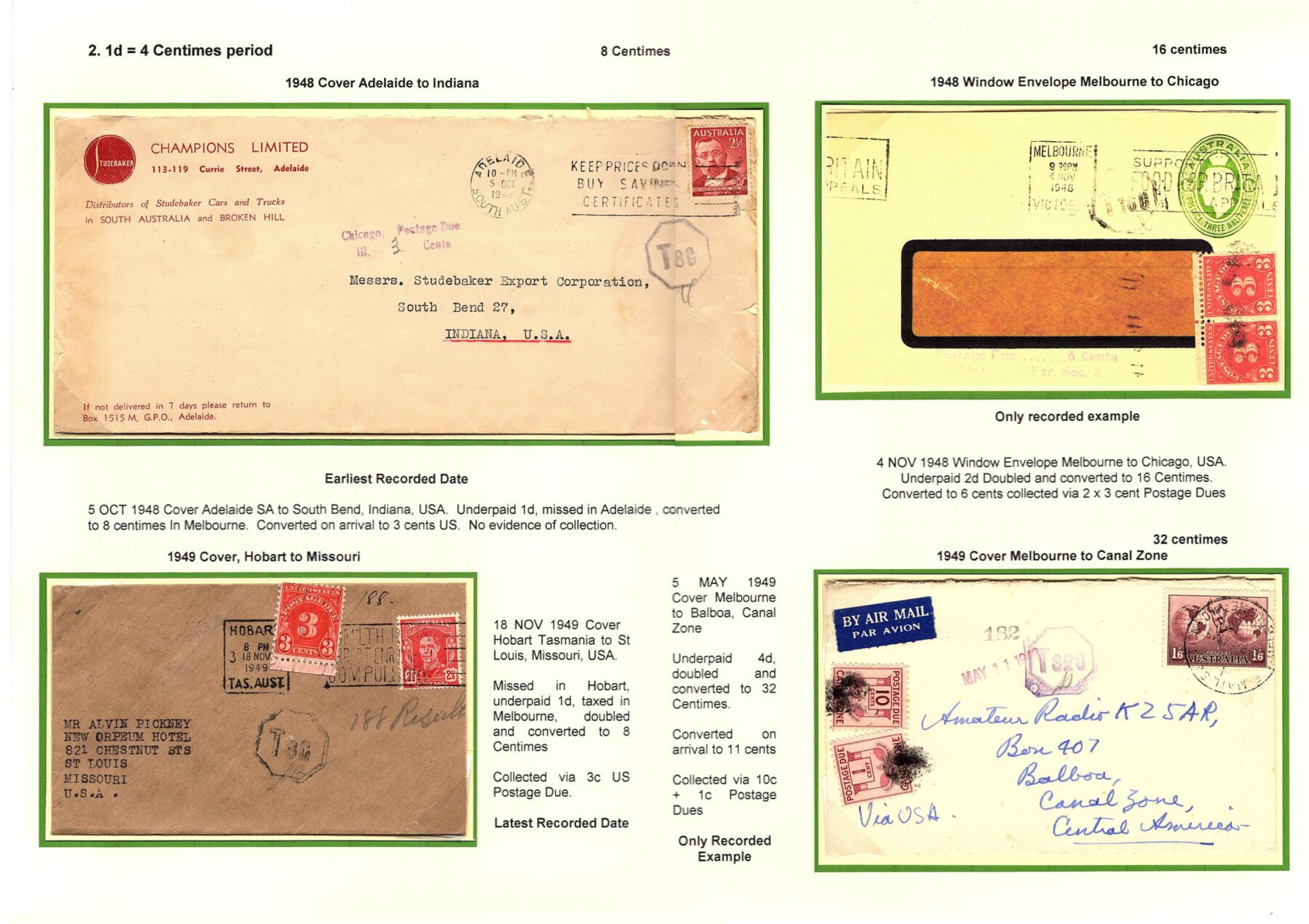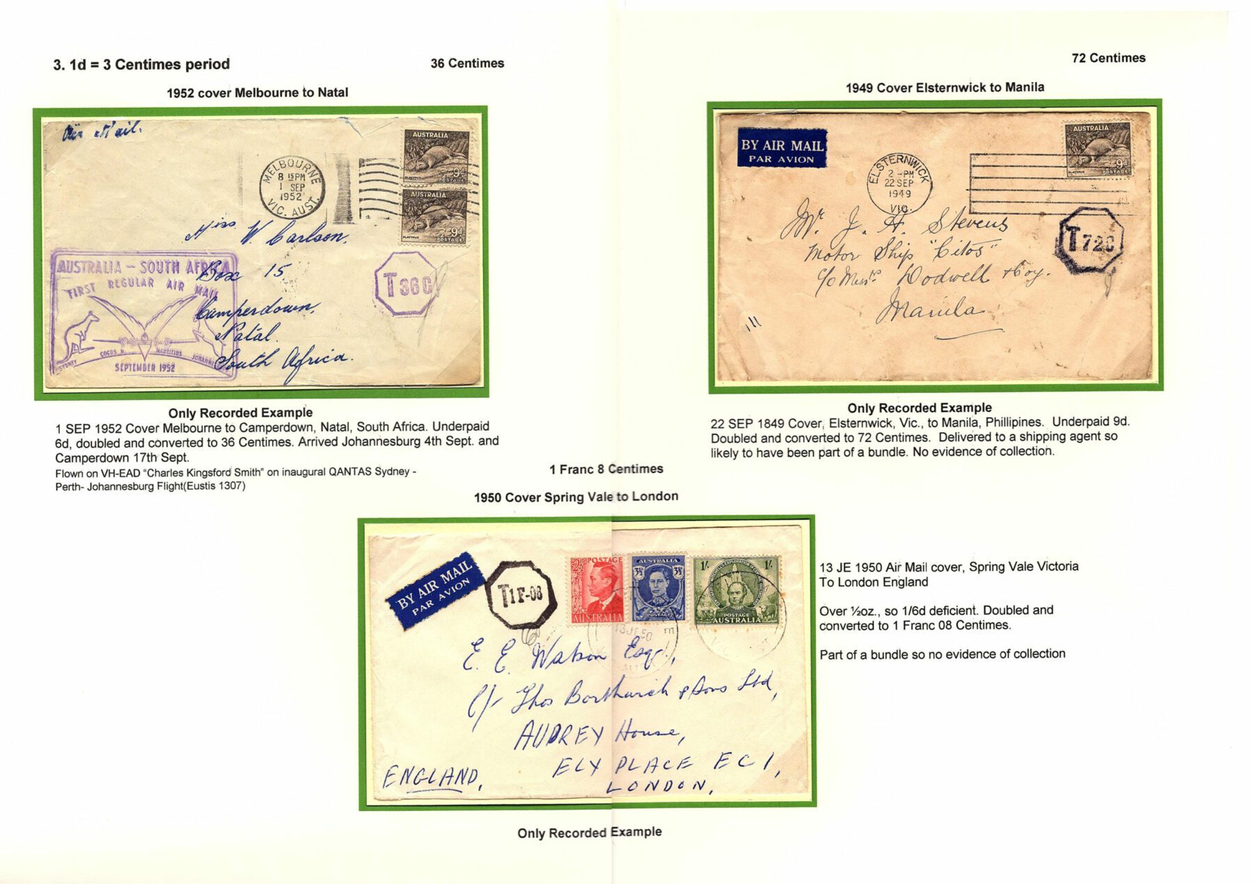 | Description: | The exhibit shows the full range of Denominated Tax Marks applied to Underpaid Outgoing Mails of Victoria, Australia, in the period 1947 to 1953. The series was short-lived and all are scarce. All research has been done by the exhibitor.